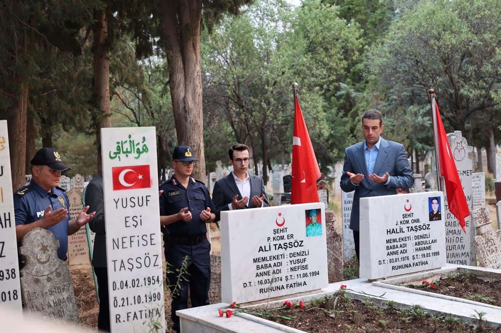 Anma etkinlikleri kapsamında ilk olarak Kaymakamımız Sayın İsmail DEMİR ve ilçe protokolü Tavas İlçe Mezarlığında bulunan aziz şehitlerimizin kabirlerini ziyaret etti.